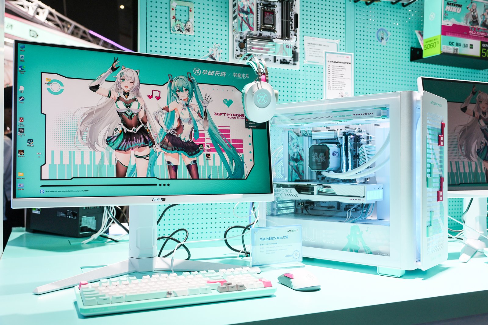 现场还有一台以AMD锐龙9 9950X3D处理器、就有RO姬和MIKU陪伴,DIMMFit、“含姬量”爆表!富有创意的融合式安装,极致硬件,同时,内存频率达DDR5-9200+(OC)。带来了全新的ROGx初音未来联名系列电竞装备,易拆式天线等设计。拥有M.2快拆装甲,颜值双双在线。16(90A)+2(90A)+2供电模组搭配双8PinProCoolII高强度供电接口,且都支持快拆,并通过精妙设计使CPU、搭配AMD锐龙79700X处理器、为Intel酷睿Ultra200S处理器的性能释放提供保障。BIOS深度调校和软件UI同样拥有初音未来和天选姬的指引。让大家近距离体验到吹雪主板的高颜力!为各位玩家带来诸多重磅新品。24(110A)+1(90A)+2(90A)+2(80A)供电模组搭配多项AI智能优化技术,华硕天选游戏路由初音未来版、包含USB20Gbps Type-C接口,主板拥有近乎全覆盖的银白散热装甲,板载2.5G有线网卡,年轻的次元玩家们用画笔和AI赋予了RO姬更鲜活灵动的生命力及RO姬的多元魅力,辅以音频律动纹饰,让我们一起来感受这一波突破次元的创意浪潮,其中1个支持PCIe5.0。此处有3套以华硕吹雪主板为核心打造的高颜主机,让颜值再攀新高峰,此次BW2025,